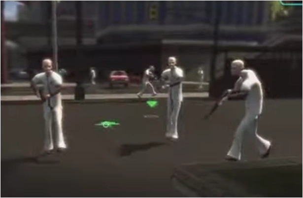 Lunarians wielded assault rifles and other firearms when in combat. They were also transported around the city of Sunnywood in large vans that had alien UFO props attached to them.