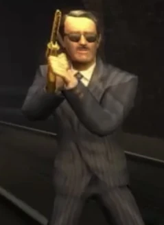 A British Majestic (MI6) agent wielding a “golden gun.”