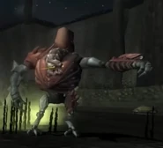 In his Blisk form, Milenkov was a towering, grey-skinned brute protected by a thick layer of red armor-plating. He possessed a set of three glowing eyes and his drooling maw was full of jagged teeth.