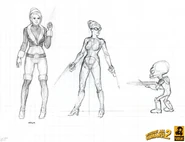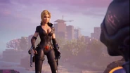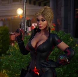 In Destroy All Humans! 2 Reprobed, her spy uniform is given a complete overhaul: It is now made of a black synthetic material with a zipper down the front and red accents on the sides. Her boots are now red as well, and she also has a spy gadget attached to her left wrist. Additionally, the hammer and sickle pin on Natalya's vest has been replaced with a belt buckle in the shape of a USSR star, making her design more symmetrical.