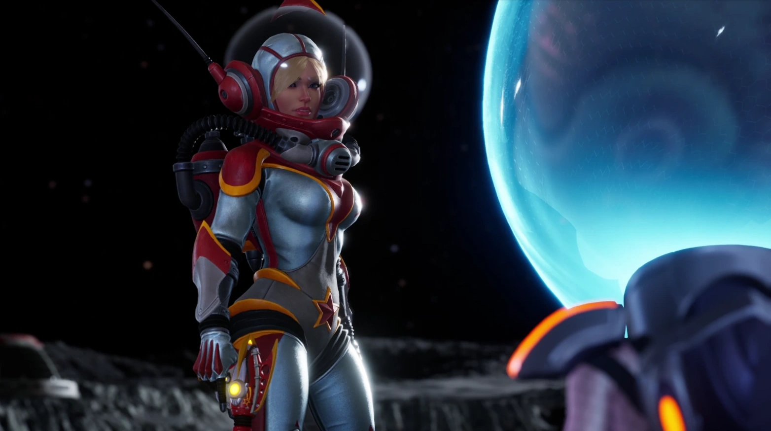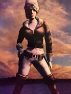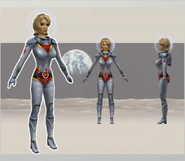 On Solaris, Natalya's outfit changed to a more science fiction-based spacesuit, with a matching laser blaster. That outfit was mostly silver with a red collar placement and a red cod piece with a red belt. Natalya also wore a "fishbowl" styled helmet, which added to her science fiction look.